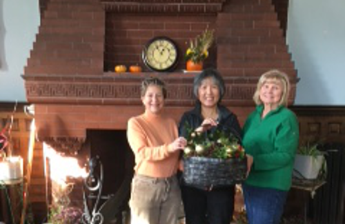 2017 Library Tree – Holly, Patti, Donna Published December 2, 2017 at 500 × 325 in ORGC Decorates Plumb Memorial Library 2017 Christmas Tree Holly, Patti, and Donna with a festive basket of holiday greens