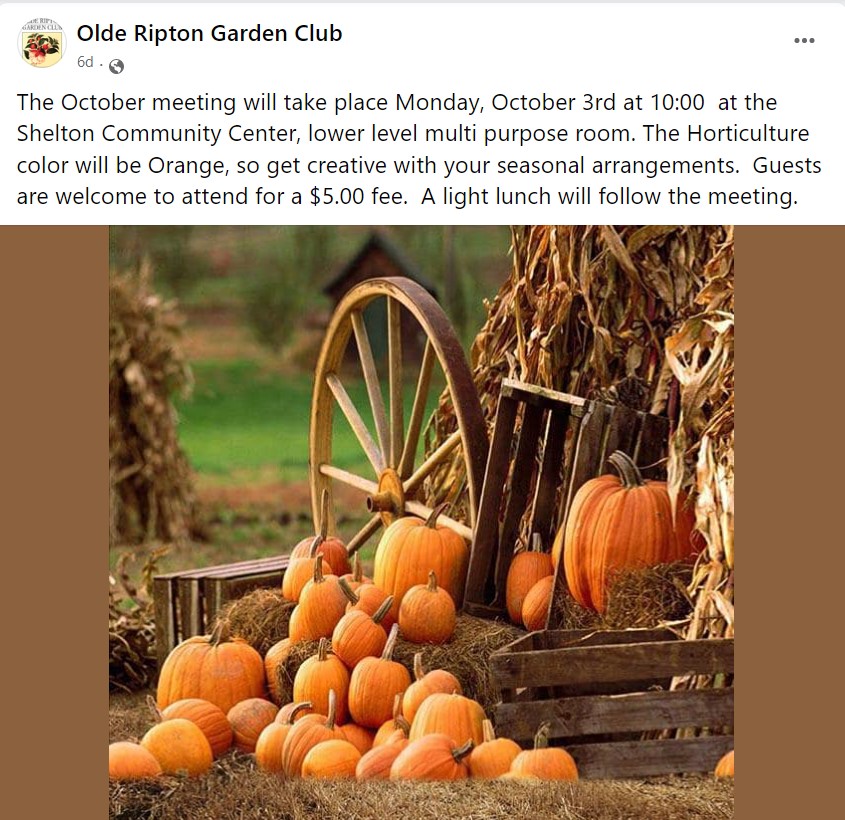 Facebook 2022-10-05 113529 Published October 5, 2022 at 845 × 820 in Fantasy Pumpkins Olde Ripton Garden Club Facebook page