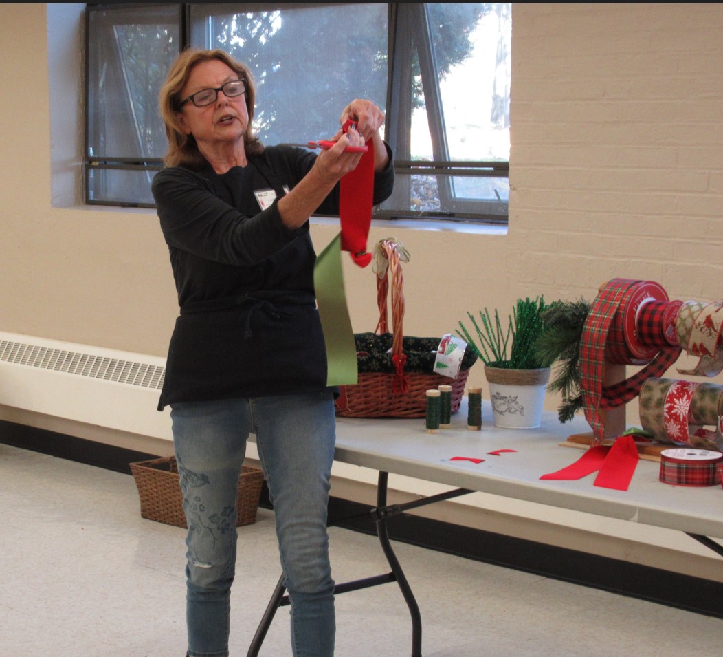 5 2022-11-11 133606 Published November 11, 2022 at 1052 × 955 in Wreath Bow Tutorial November 2022 Linda giving directions for bow making