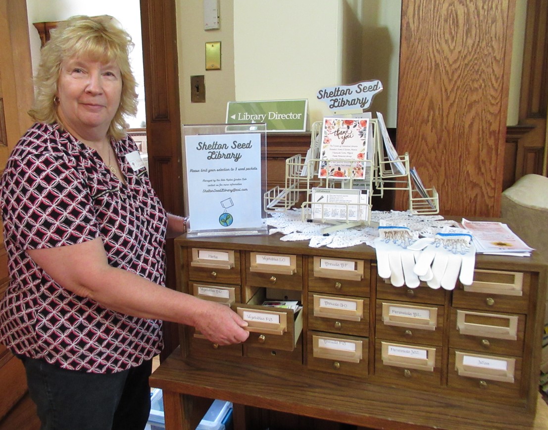Card Catalog 3 Published April 23, 2023 at 1107 × 868 in Olde Ripton Garden’s Seed Library Opening Day Debbie Mica at the Card Catalog