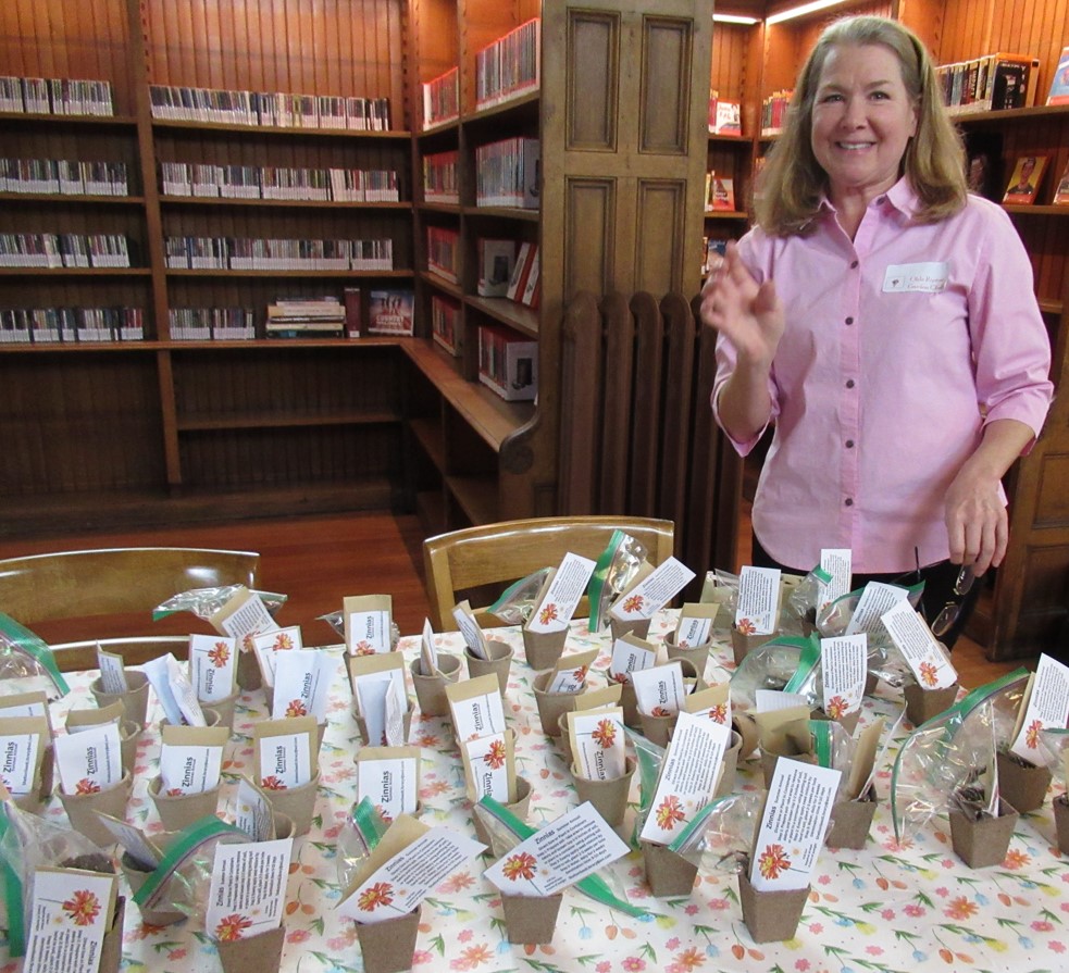 J. Published April 23, 2023 at 983 × 895 in Olde Ripton Garden’s Seed Library Opening Day J. Stapkowski at the Zinnia seed table